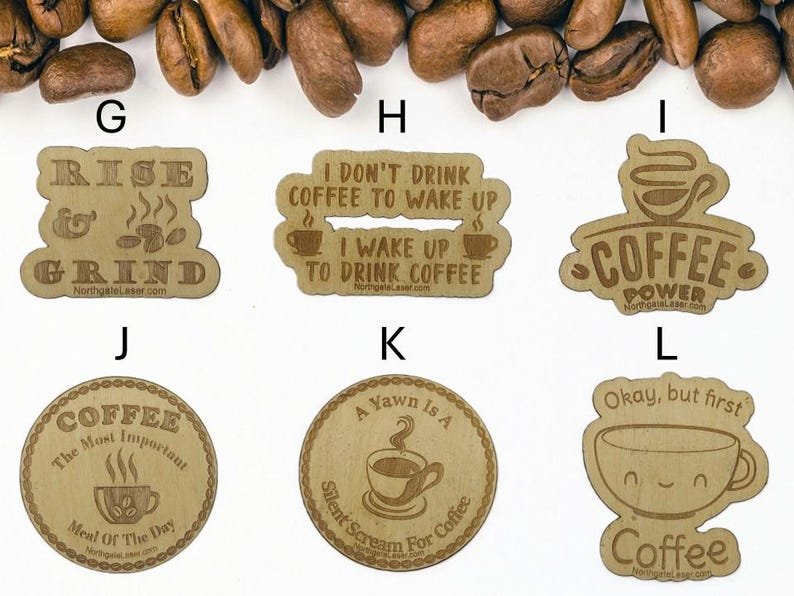 Coffee Lover Wood Stickers, Natural Decals, Real Wood Stickers for Laptops, Coffee Cups, Water Bottles,Journals, Art Projects, Etc.