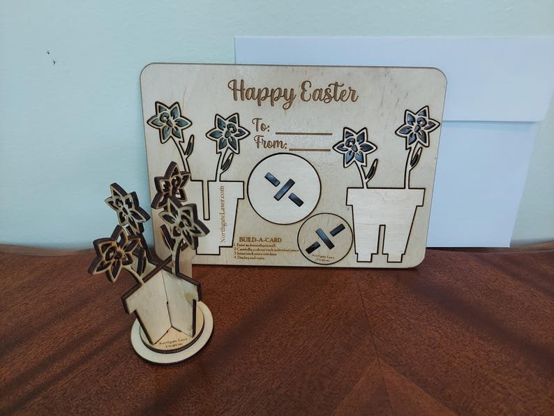 Be the first to review “Flower Pop Up Card, Get Well Gift, Wood Paintable 3D Model”