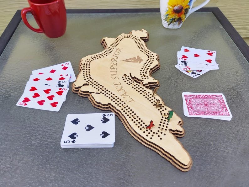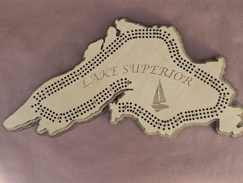 Showcase your love of Lake Superior and all its glory with the game that brings all Midwesterners together. Our beautiful Lake Superior cribbage board showcases the beauty of the great lakes, makes for beautiful décor, and brings the family together to play a boardgame. Included with the board are unique Lake Superior-themed cribbage pegs.