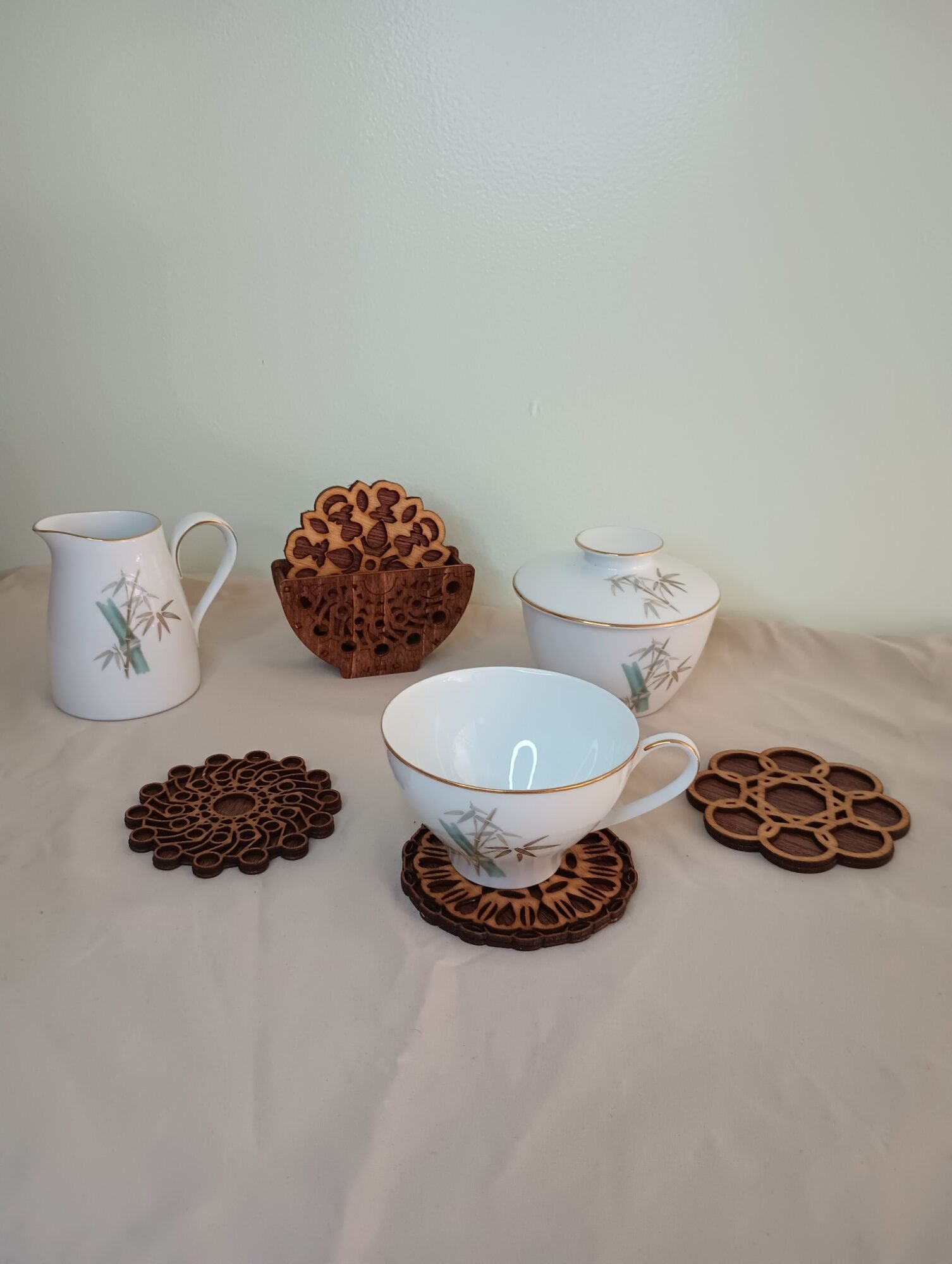 • Set of 4 geometric laser cut wooden coasters